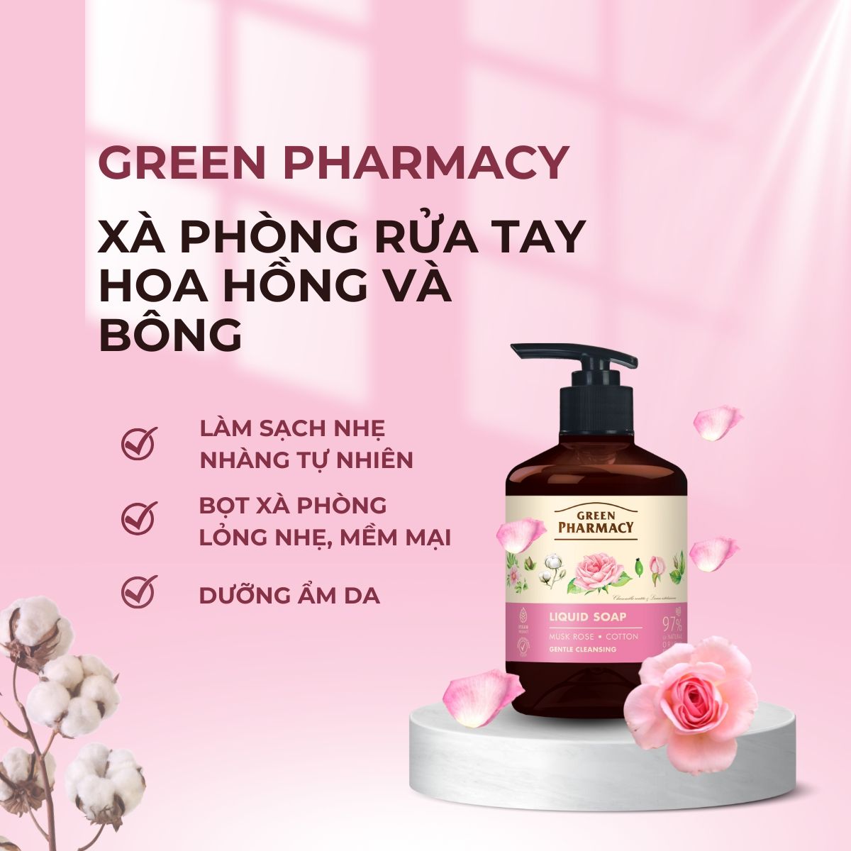 Xà phòng rửa tay Green Pharmacy Hoa hồng và Bông 460ml